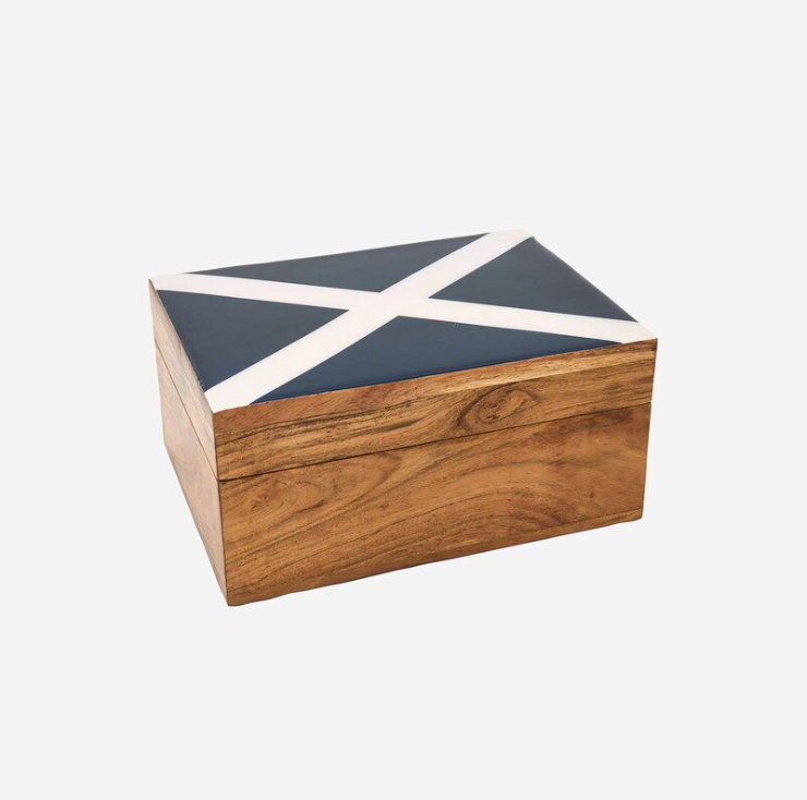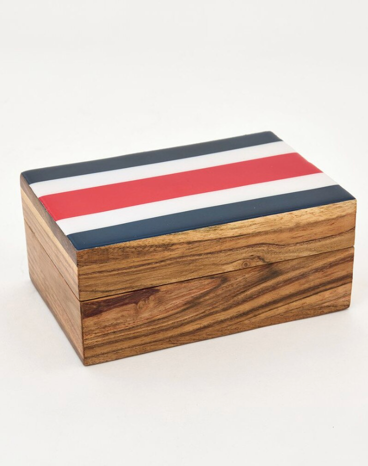 Set sail for organized charm with these delightful wooden boxes featuring vibrant nautical flag designs. Each enameled wood piece brings coastal flair to desks, shelves, and bedside tables. Perfect for stashing treasures, keepsakes, or everyday essentials, these charming containers blend functionality with seaside whimsy. Whether you're a maritime enthusiast or simply love nautical aesthetics, these boxes add a splash of ocean-inspired personality to any space.