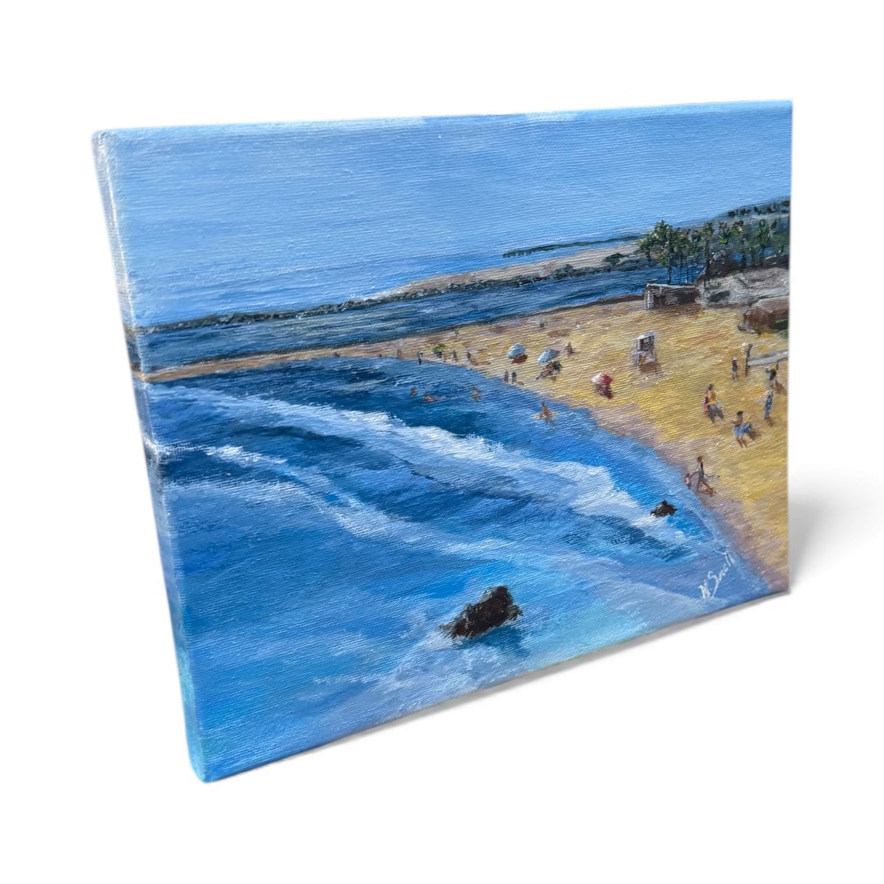 Original painting by Nancy Snell. This is just the best way to add a beach vibe to your home. Add the sandy beach , blue sky and salty sea to a book shelf, on a small easel resting on a stack of books or hang on a wall! Enjoy a favorite Southern California beach, Big Corona!