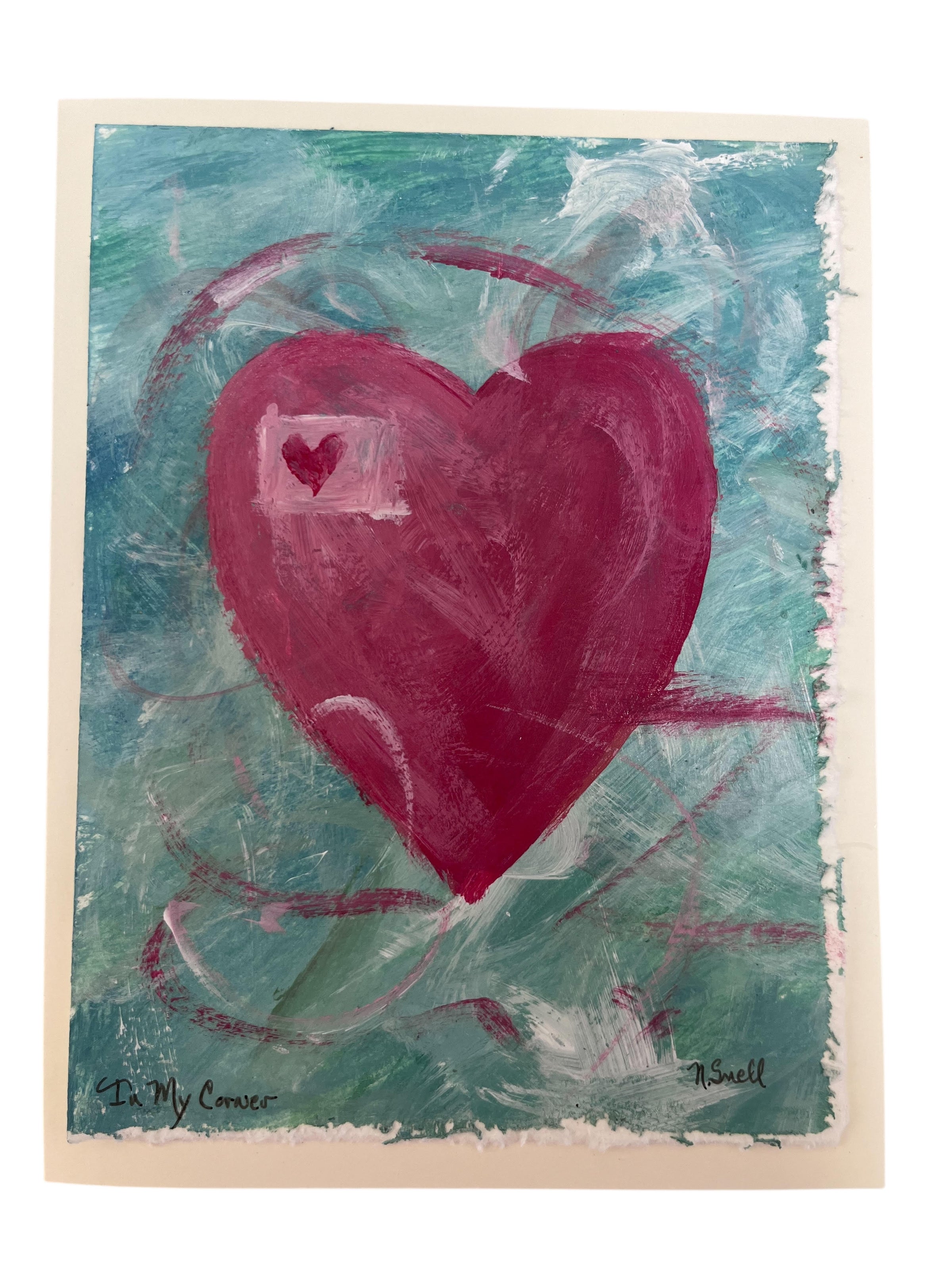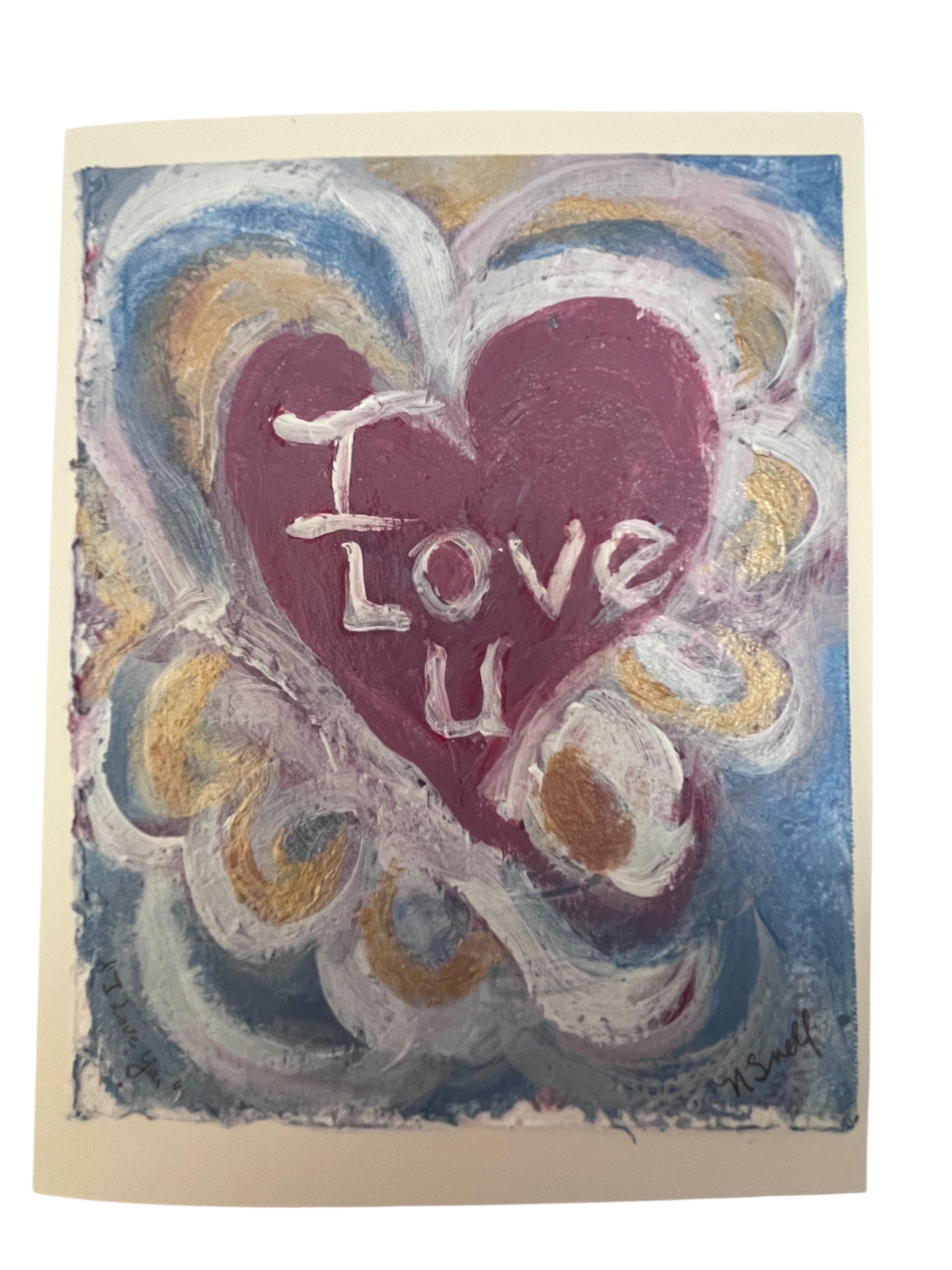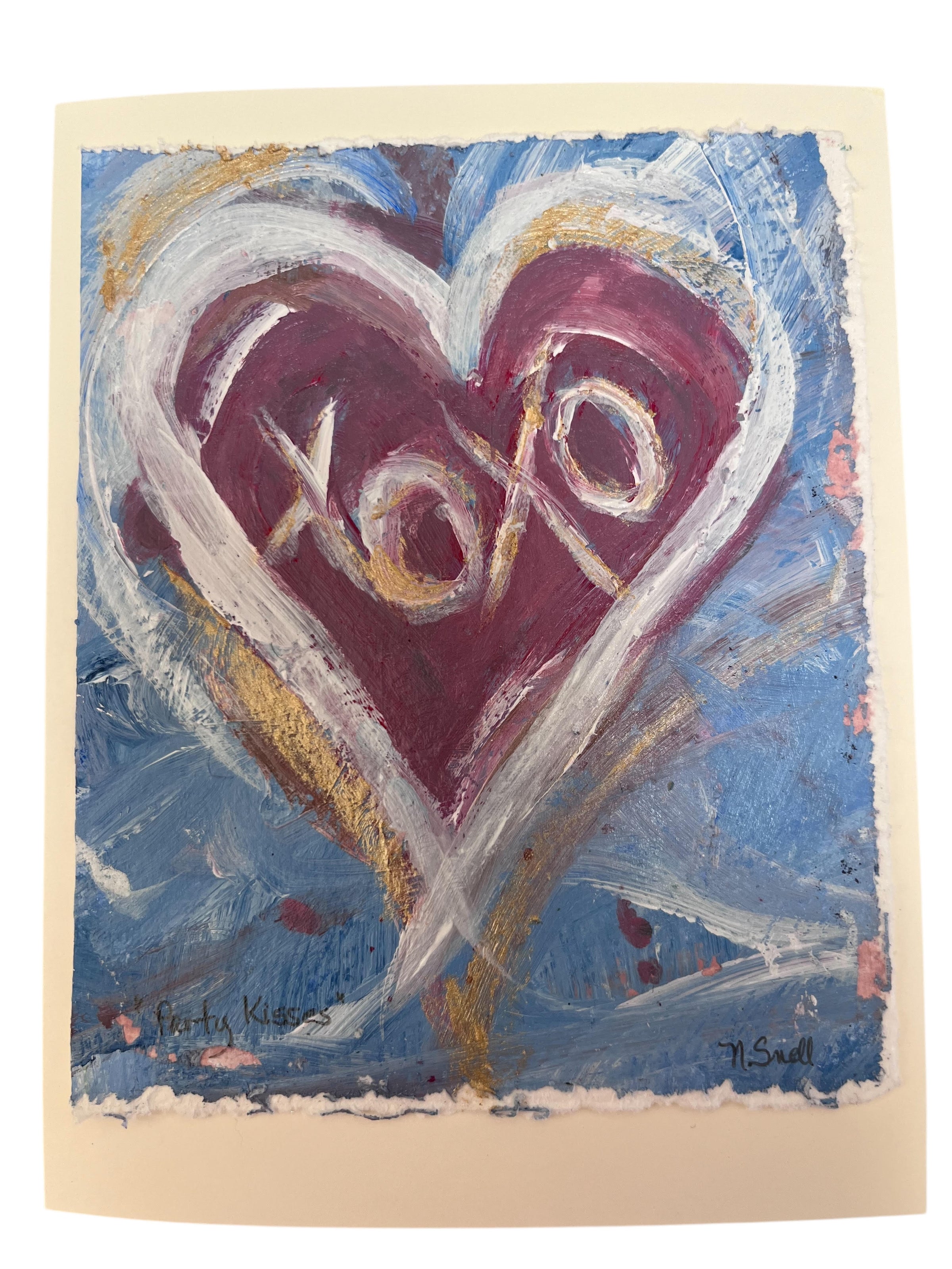 These hand painted card are from her Valentine Graffiti Collection. With vibrant and deliberate brush strokes each one captures a different love message and feeling. These make the perfect Valentine for someone you love, or it’s also okay to keep for yourself!