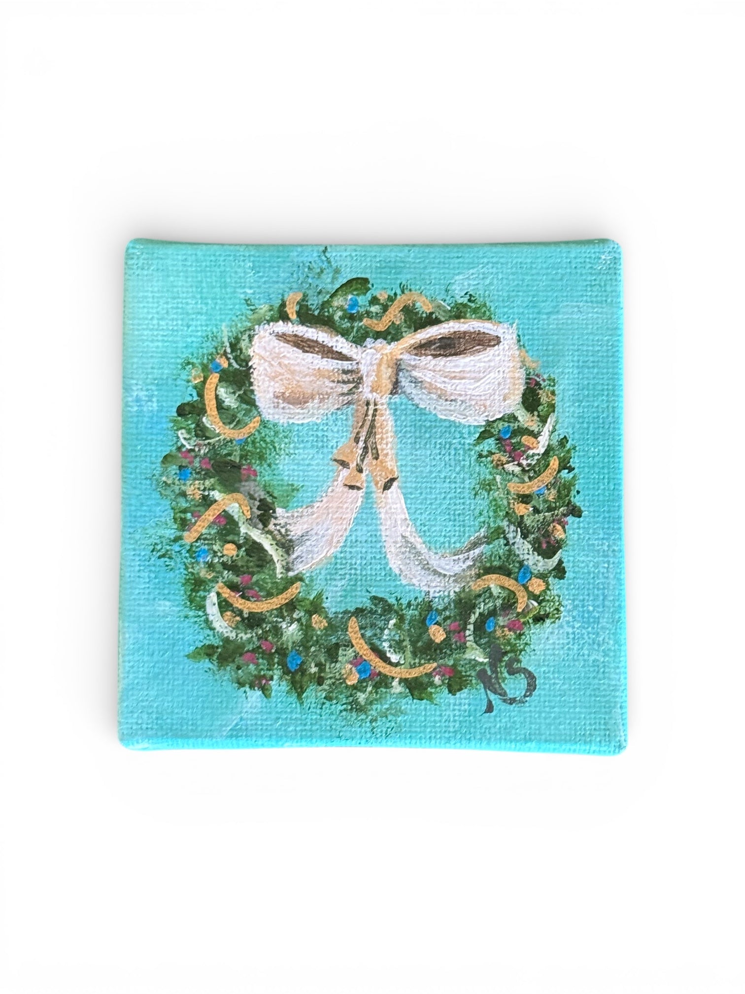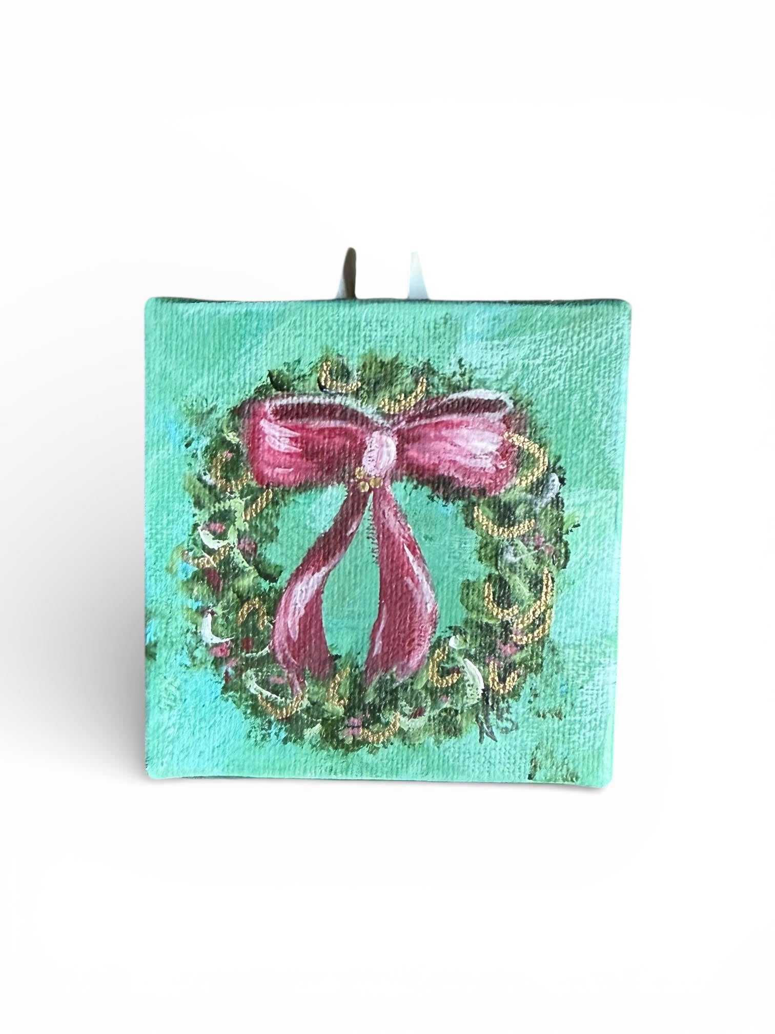 The sweetest original paintings for the Holidays by Nancy Snell. These original hand painted wreaths will be the perfect Hostess gift! This is sweet little original hand painted Holiday Wreath and it will be great in any room, bookshelf, end table or to hang on a wall!