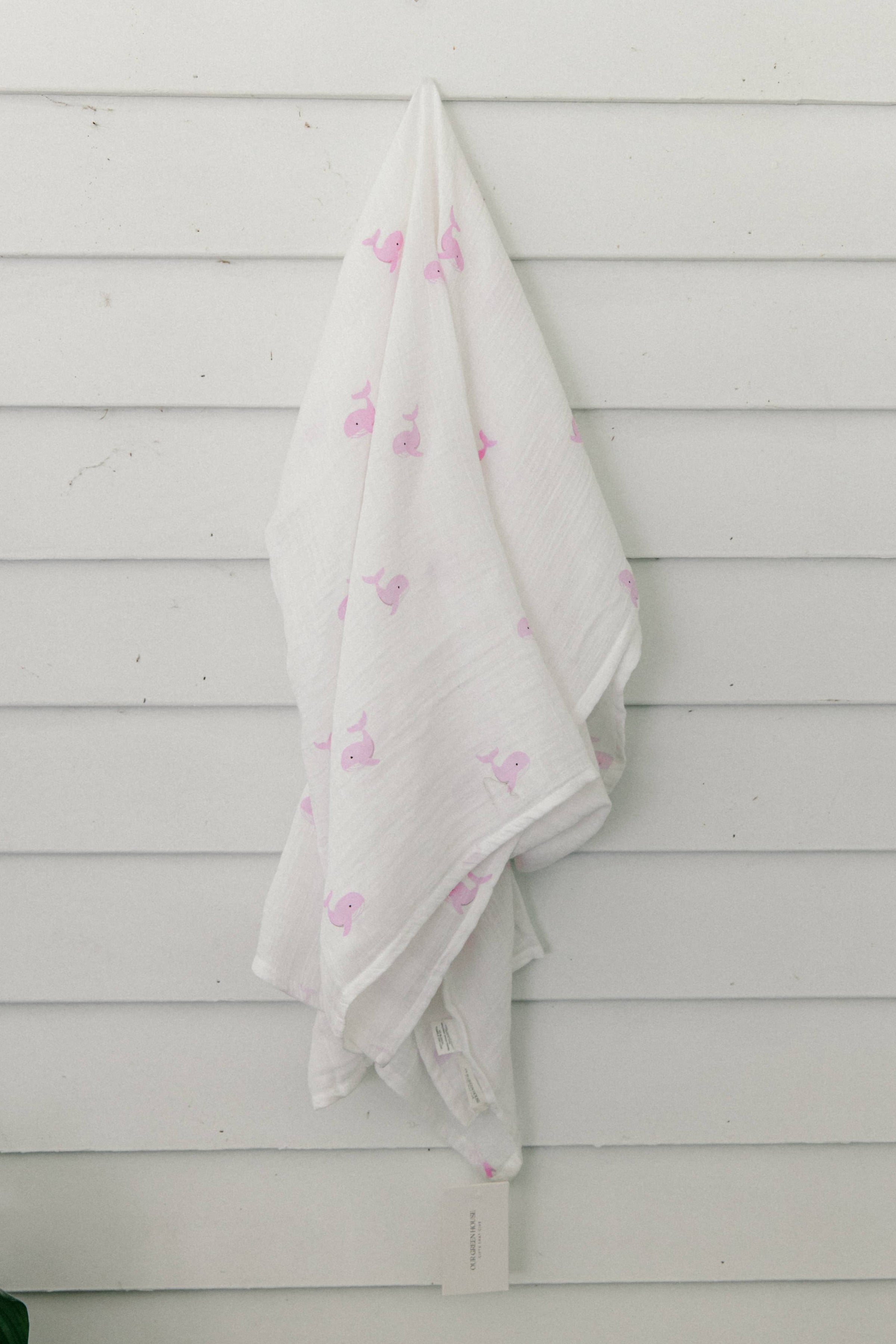 BA - Organic Muslin Baby Swaddle - Pink Whale Print