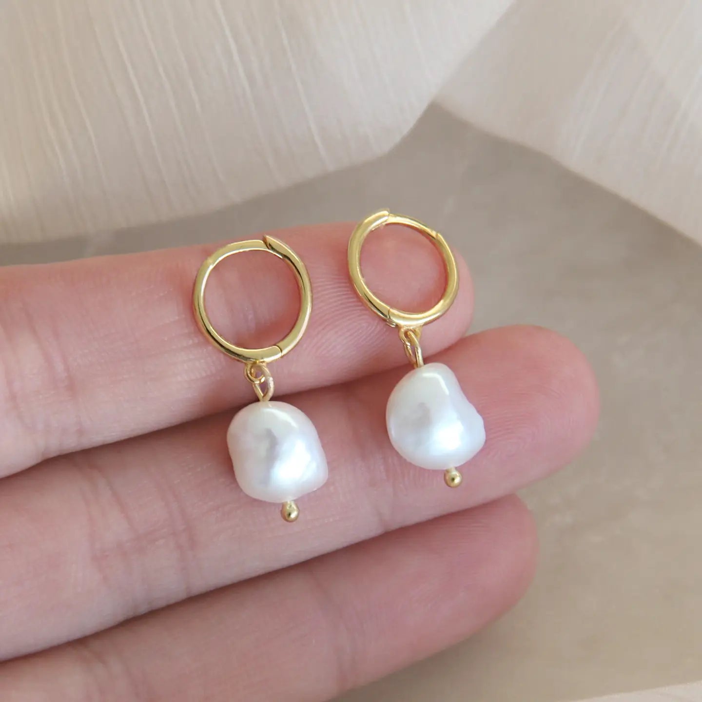 Pearl Drop Hoop Earrings • Featuring freshwater pearls. Please note these are real pearls and each pearl will be uniquely beautiful. • Base Material: High Quality Solid 925 Sterling Silver • Finish: 18K Gold or Platinum • Measurement: 11mm hoop, approximately 10mm pearl • Nickel Free and Lead Free • Hypoallergenic, Made for Sensitive Skin