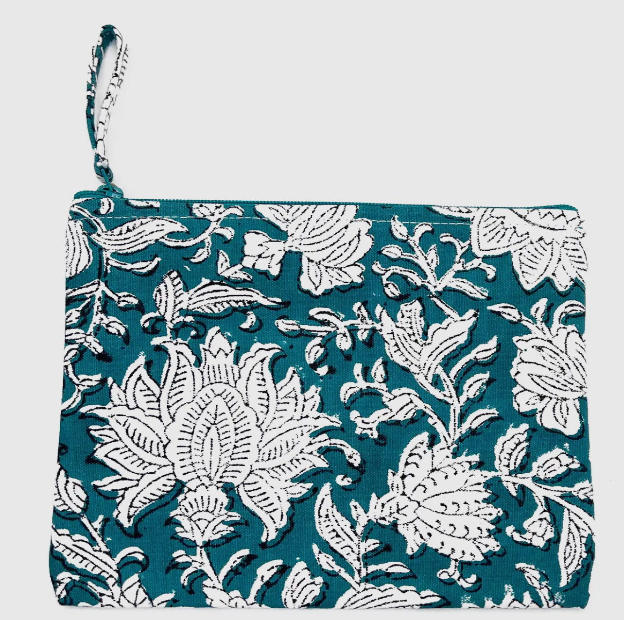 100% cotton, hand block-printed zipper pouches. Crafted with durable canvas with a sturdy zipper.