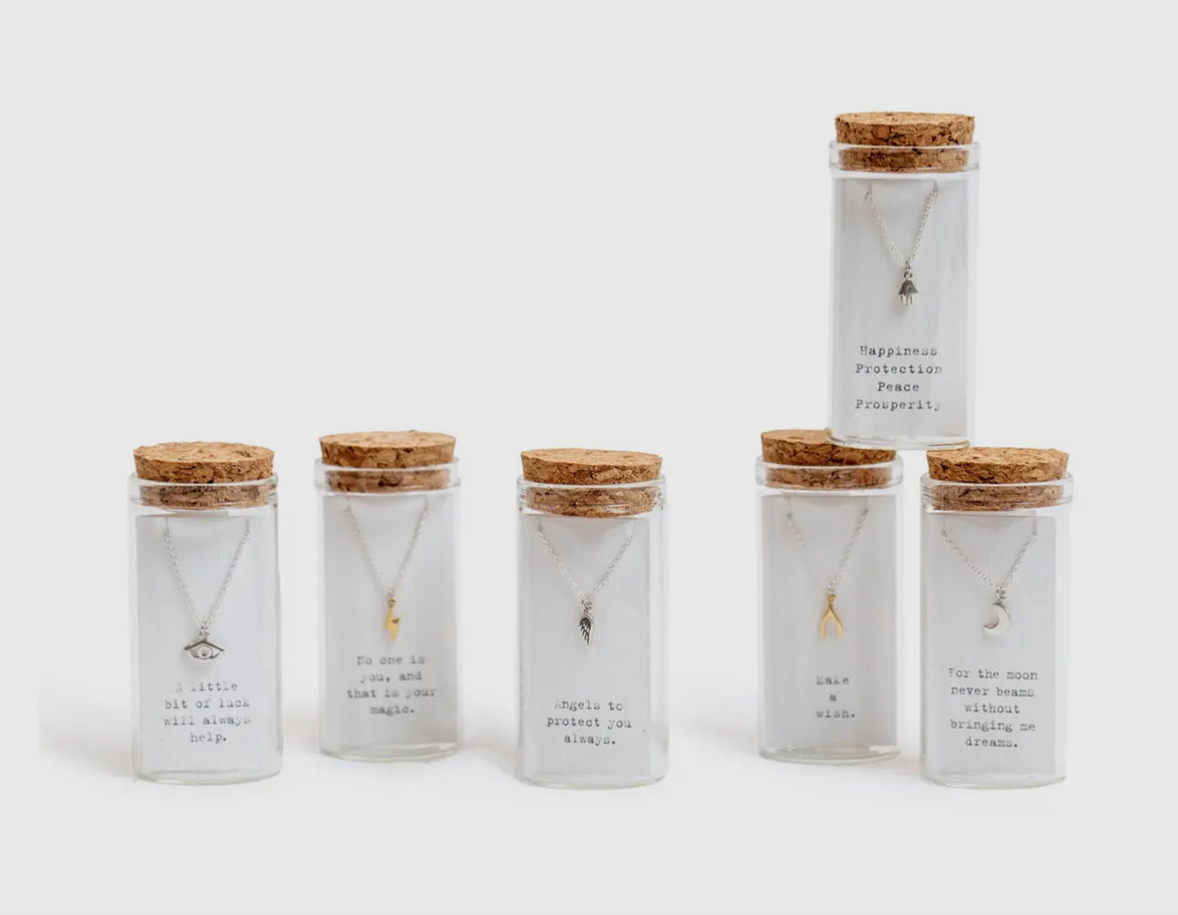 These necklaces each come with a card and a glass vial, perfect for gift giving.