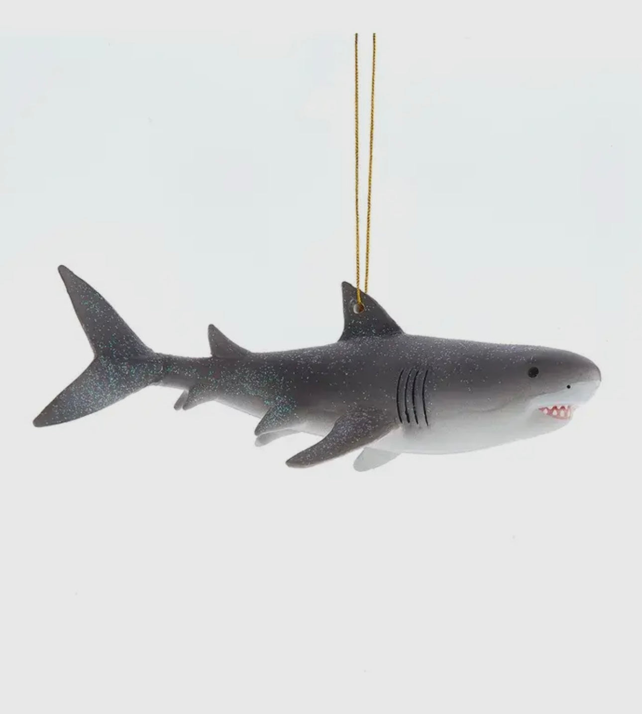 Decorate your Christmas tree with this whimsical and fun Kurt Adler glass great white shark ornament. Crafted with intricate detail, this ornament will add a beachy and nautical touch to your holiday decor. Made with quality materials, it's the perfect addition to your collection of unique and eye-catching decorations.