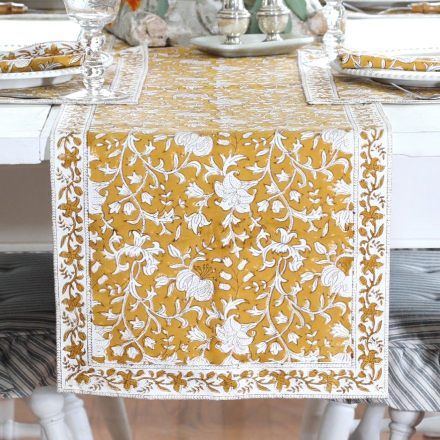 Hand block-printed in Jaipur, India on 100% cotton canvas. Machine wash & hang dry 14″x90″.