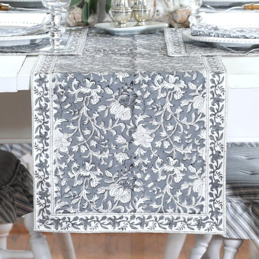Hand block-printed in Jaipur, India on 100% cotton canvas. Machine wash & hang dry 14″x90″.