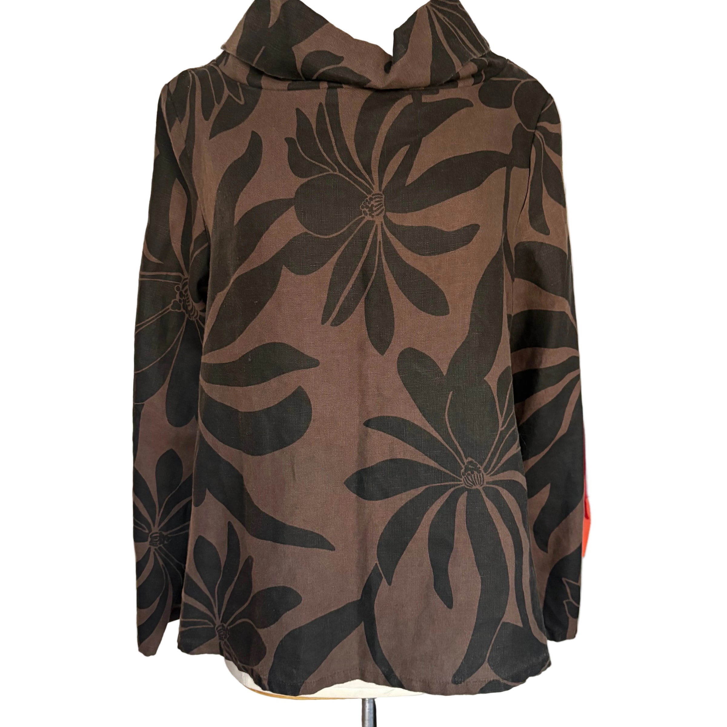 Bryn Walker 100% Cotton A Line Top in Black Brown Tropical Print