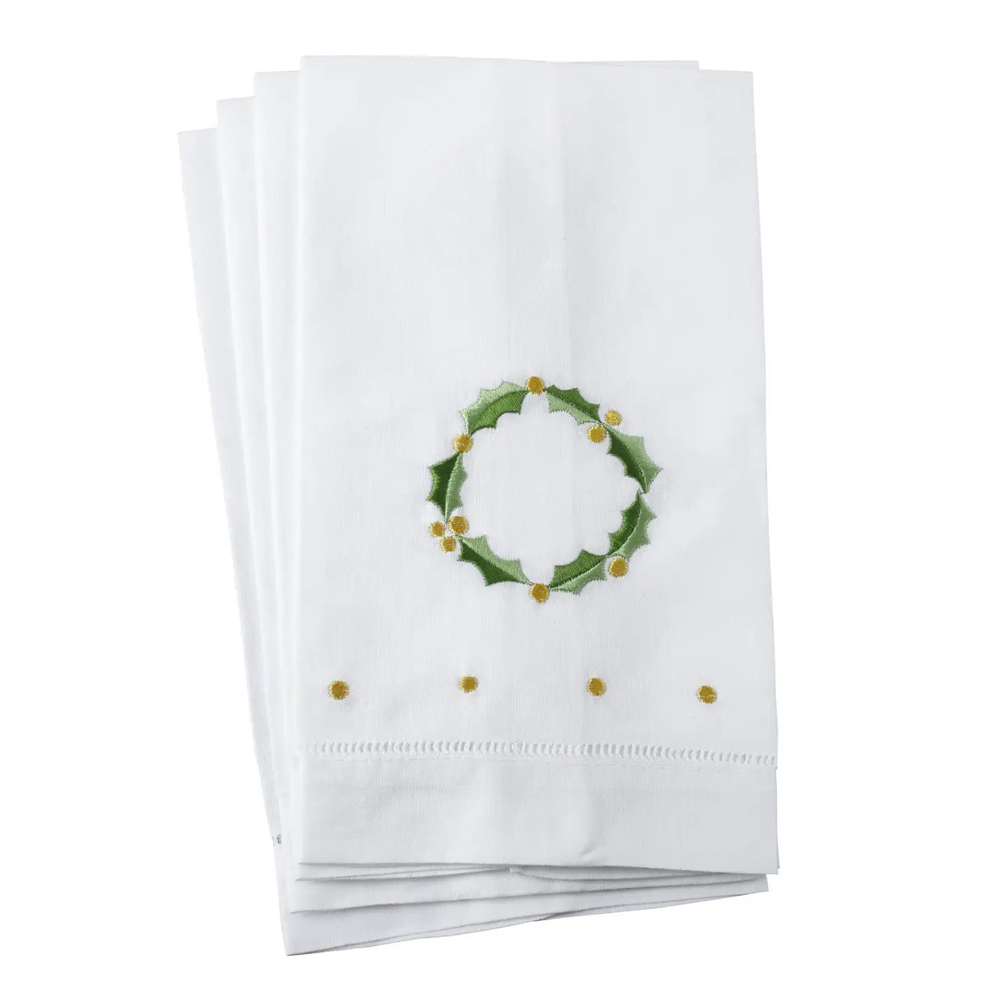 : The Hemstitched Design Holiday Towels take the stress away from holiday décor. Let joy and excitement take over your home with these beautiful, whimsical cotton and linen towels. The set is easy to coordinate with any existing décor.