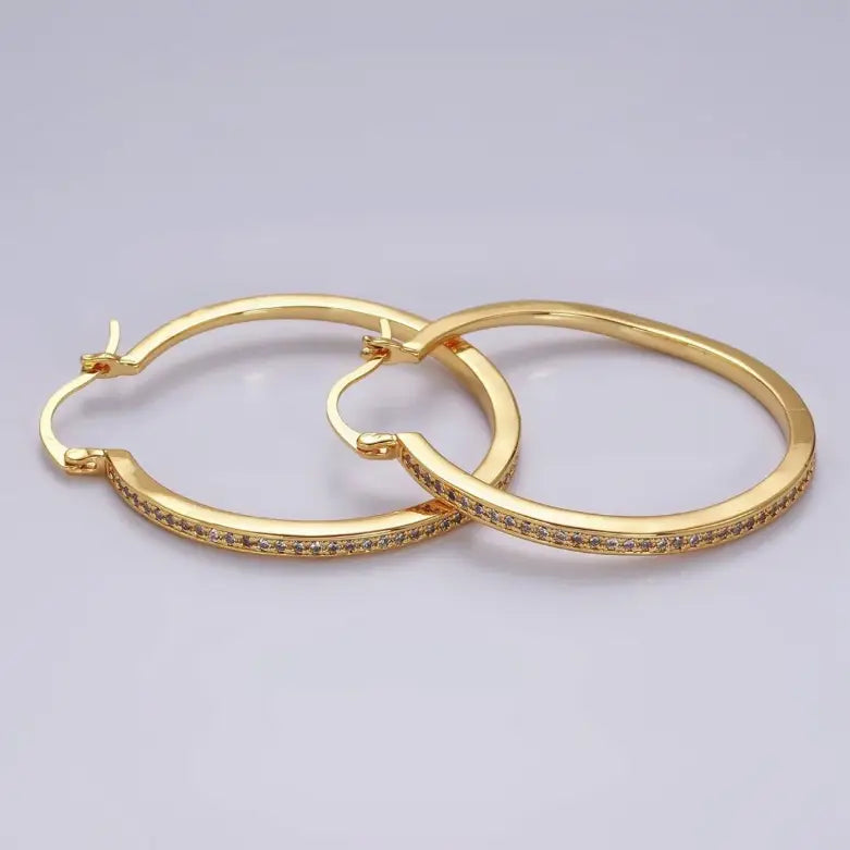 14K Gold Filled 30mm Clear CZ Lined Latched Hoop Earrings