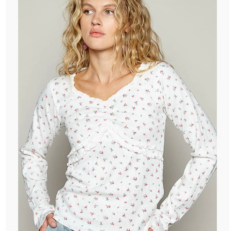 Ditsy Floral Print Cotton Tee, Long Sleeve,