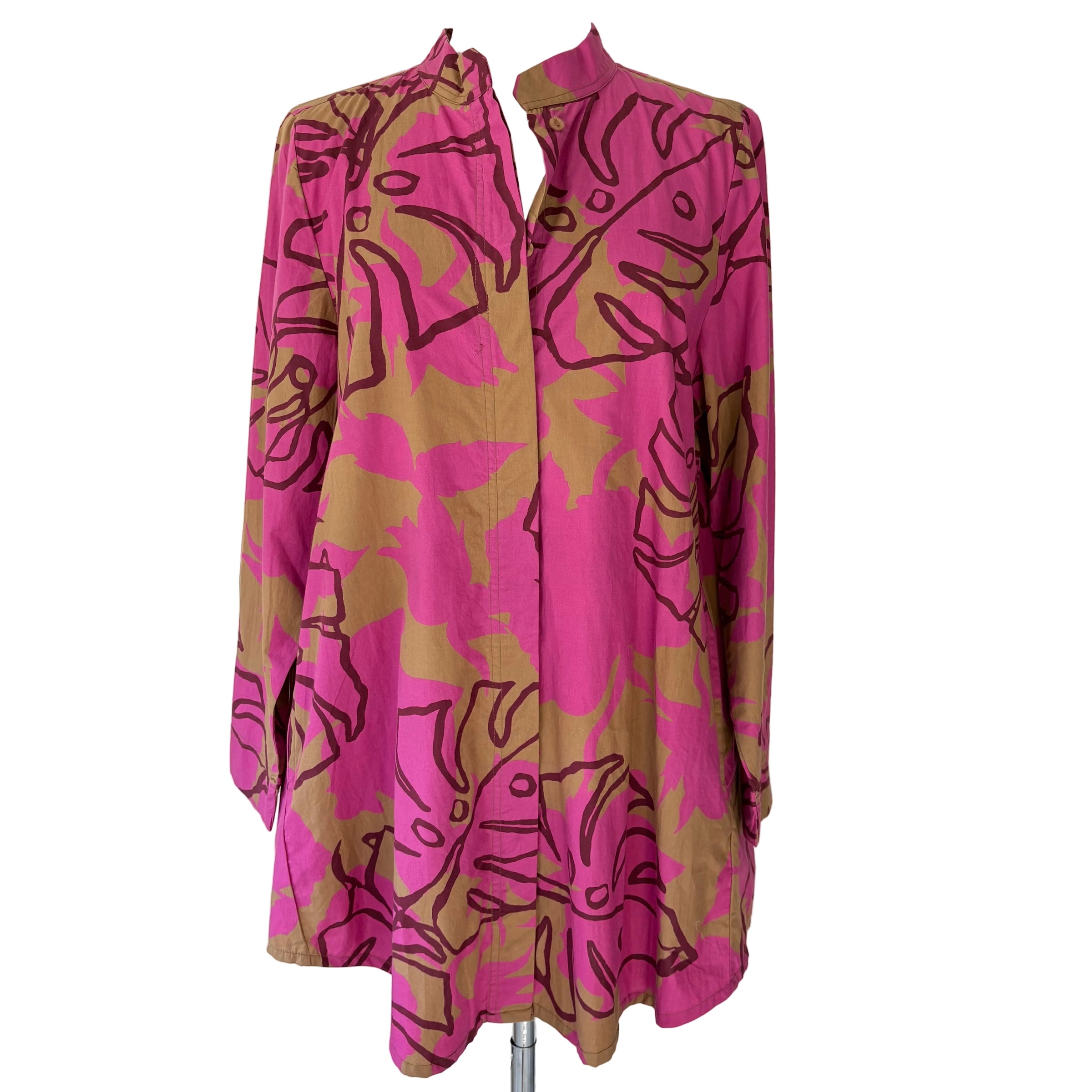 Long Sleeve Mandarin collar button down Tunic with side pockets
