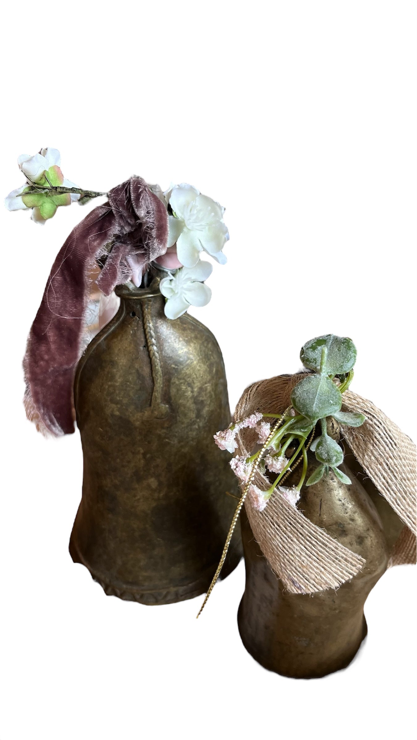 Each one is a one of a kind and have their own unique quality and ring tone. They are fun to style on a mantle or coffee table all year. Here they have already been styled with a touch of ribbon and Spring blossoms making them the perfect wedding gift or addition to your Spring and Summer decor! However, they are embellishment, they are truly a work of art all by themselves! They make a wonderful hostess or birthday gift as well as a wedding bell gift!