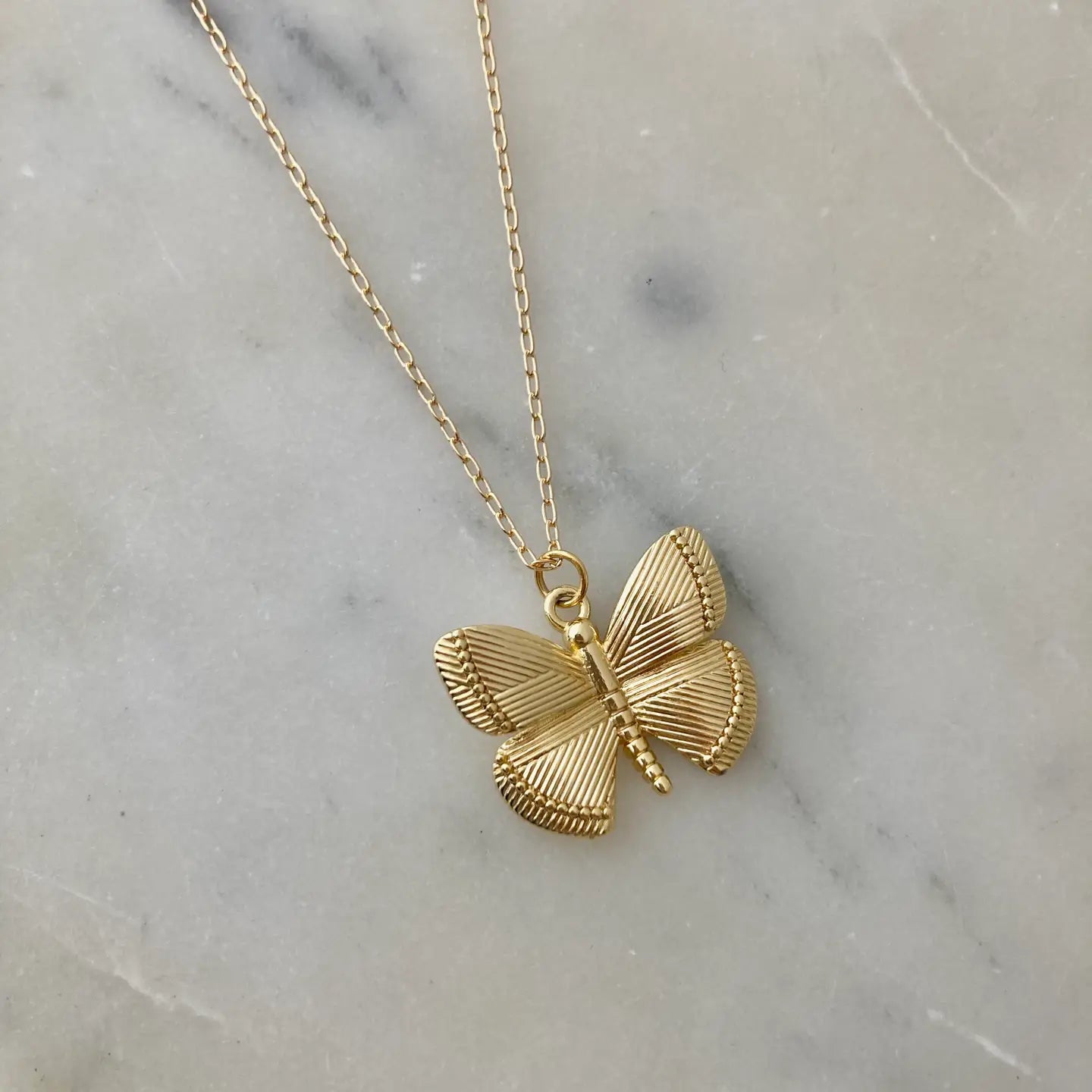 ⭑ Cute and trendy gold plated butterfly charm pendant attached to a 18K gold filled beaded chain or regular strand chain.